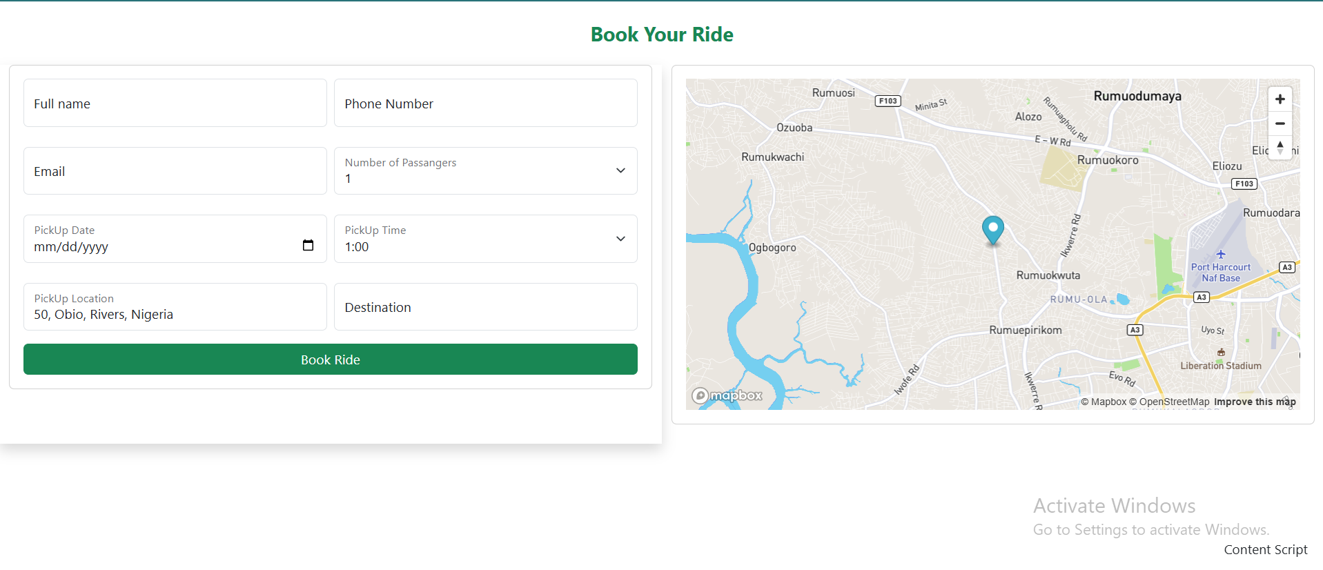 The Shuttle Booking System allows drivers to register and publish their vehicles, making it easy for passengers to book a ride. Passengers can view driver details and select a shuttle. The booking form automatically captures the passenger’s current location and destination, calculates the fare based on the distance and the driver’s rate per kilometer, and displays the total charge to the passenger.