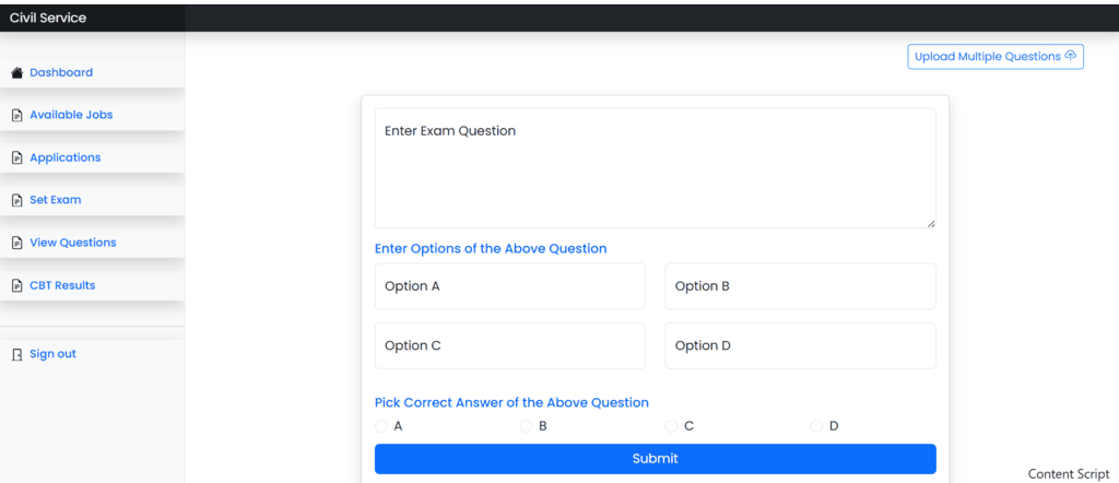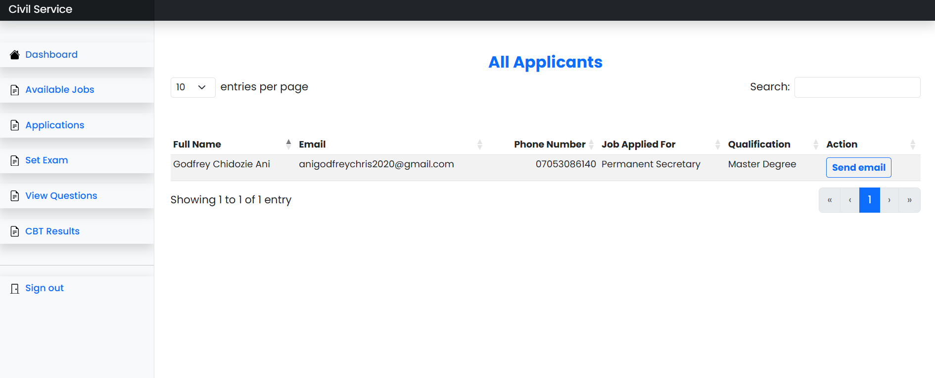 This Job Recruitment Website simplifies the recruitment process for organizations. The platform allows the admin to publish job listings, and users can apply for jobs online. After the application process, successful candidates are notified via email with login credentials to take a Computer-Based Test (CBT). The admin can view exam results and send appointment letters to qualified candidates.